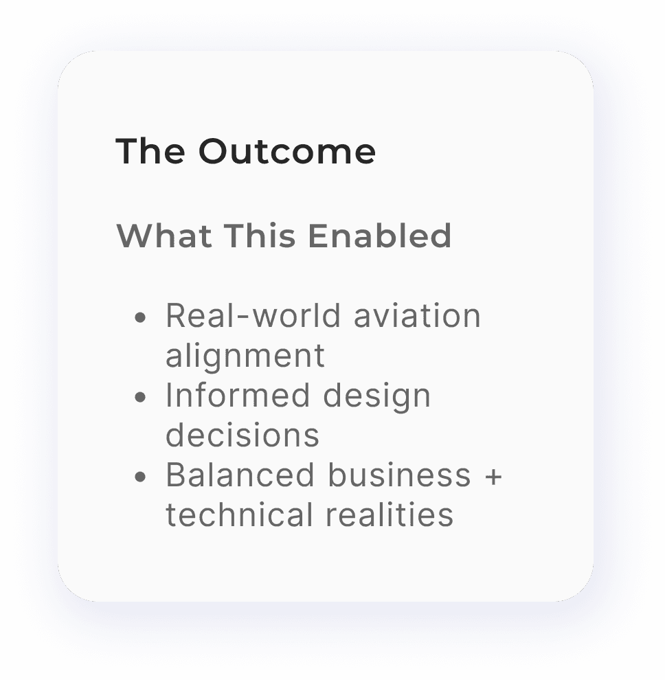 As the Product Designer, I owned the UX strategy - translating complex aviation requirements into clear, intuitive workflows. I partnered with analysts, engineers, QA, and leadership to align teams, balance business goals with user needs, design scalable solutions within technical constraints, and measure the impact of the workflow changes.